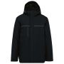 100% poliészter. Külső: 100% poliészter ripstop. 2-rétegű ragasztott légáteresztő 3000g/m2/24h és vízálló 10000 mm-es szövet. Megfelel az EN343:2019 szabványnak. 3. osztály (a ruházat véd az eső ellen). Bélés: 100% poliészter. Belső párnázat: 100% poliészter. Elöl: 2 oldalzseb és 1 mellzseb vízálló nejlon cipzárral. 1 belső zseb szakadásgátlós rögzítéssel. Cipzár viharzárral és szakadásmentesítő zárral. Kontrasztos szalag a mellkason. Bélelt 3 paneles kapucni, amely állítható cipzárral, és tépőzárral. Állítható mandzsetta tépőzárral. 2 részből álló bélés: felső rész fleece, alsó rész párnázott. Akasztóhurok a nyak belső oldalán. Letéphető márkajelzés.
