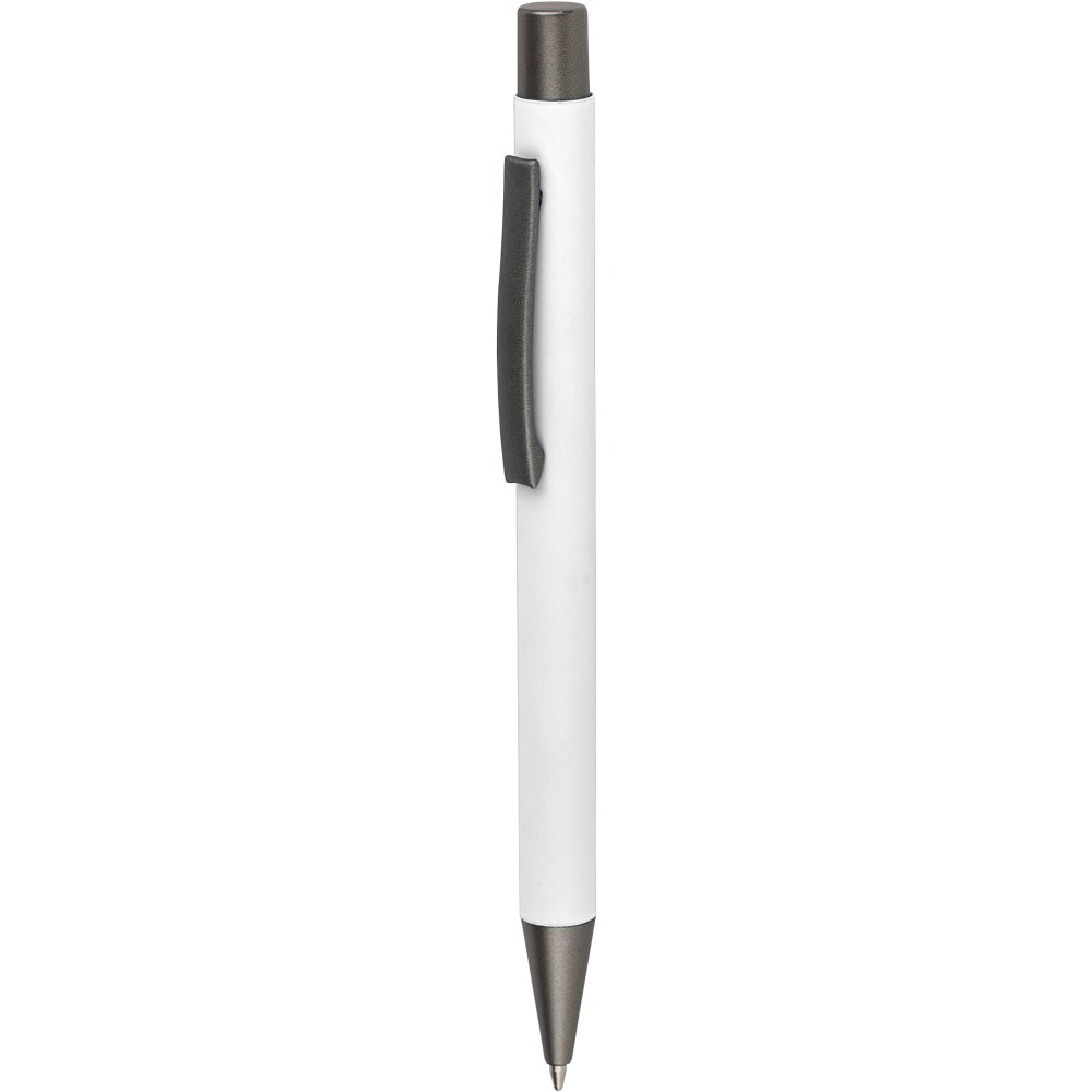 Újrahasznosított alumínium golyóstoll lágy tapintású gumírozott felülettel és kék tollbetéttel. Sötétszürke kiegészítőkkel és a bevonat alatti tükörhatású réteggel tervezve a látványos gravírozási eredmény érdekében. Nyomógombos szerkezettel és gravírozott újrahasznosított logóval.