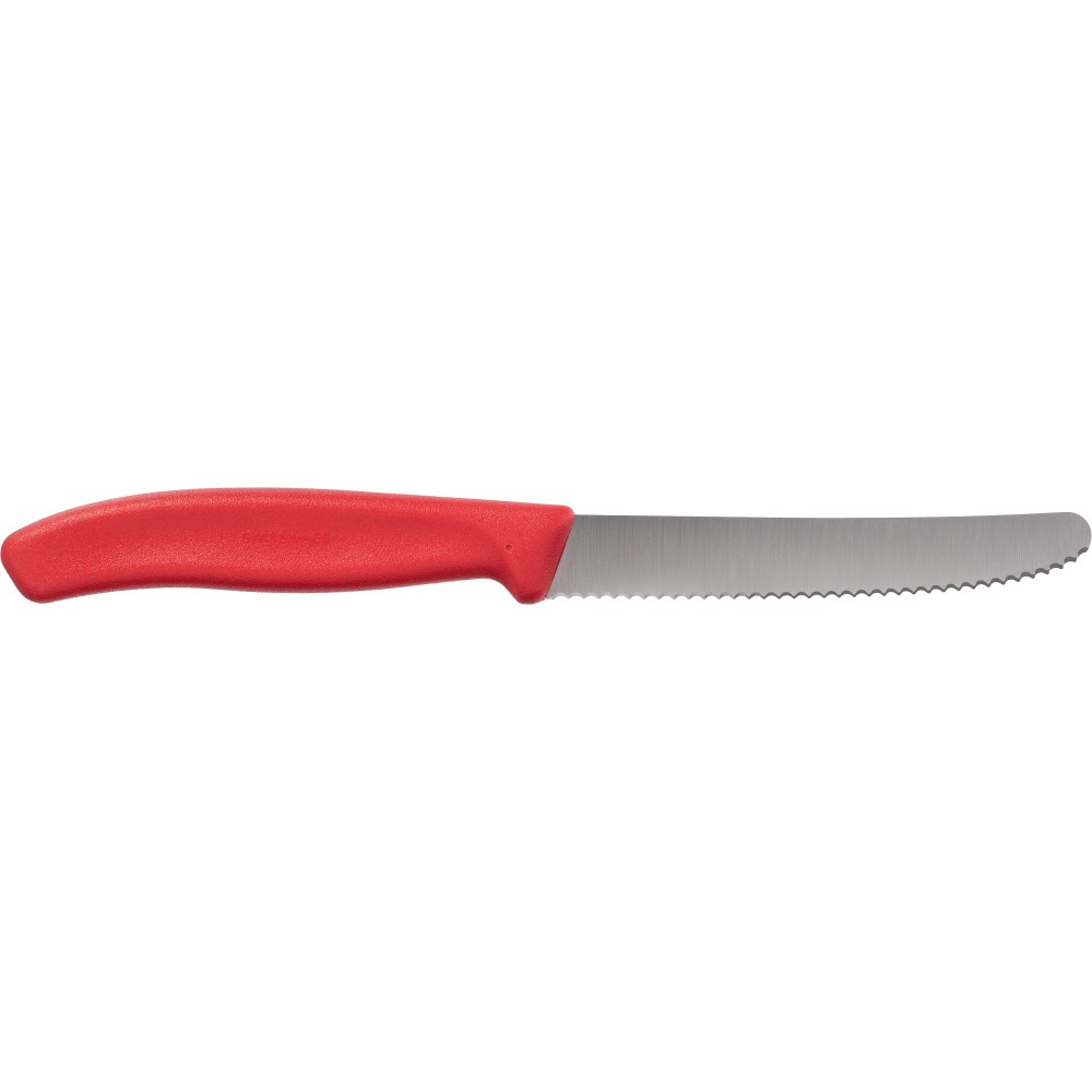 Ez a Victorinox Swiss Classic reggelizőkés precíz és könnyed vágásra készült. A rozsdamentes acél penge egyszerűen szeleteli fel a paradicsomot és más puha vagy kemény alapanyagokat, így ideális választás a mindennapi konyhai használatra. A kés tartós rozsdamentes acél pengével és ergonomikus markolattal rendelkezik a kényelmes és biztonságos fogás érdekében. A Victorinox világszerte ismert svájci bicskáinak minőségéről, és ez a termék ugyanezt a megbízhatóságot és precizitást képviseli a konyhában is.