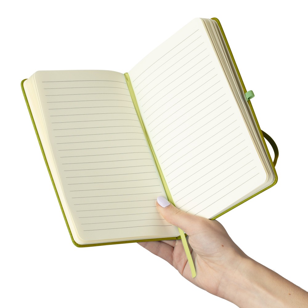 A5-ös jegyzetfüzet újrahasznosított borítóval, lime