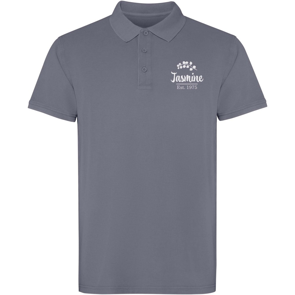 Rövidujjú, uniszex piképóló, amely koptatott (acid-wash) felületkezeléssel készült az egyedi megjelenés érdekében. A gallér és ujjpasszé 1x1 bordás kötésűek, az oldalán sliccelve a kényelmes viseletért. A modell színazonos fedőöltésekkel és háromgombos gombolópanellel rendelkezik. 100% pamut, 200 g/m2.