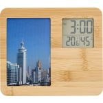 Bambusz időjárás állomás képkerettel. Funkciók: óra, hőmérő és páratartalom-mérő. Az elemet tartalmazza.