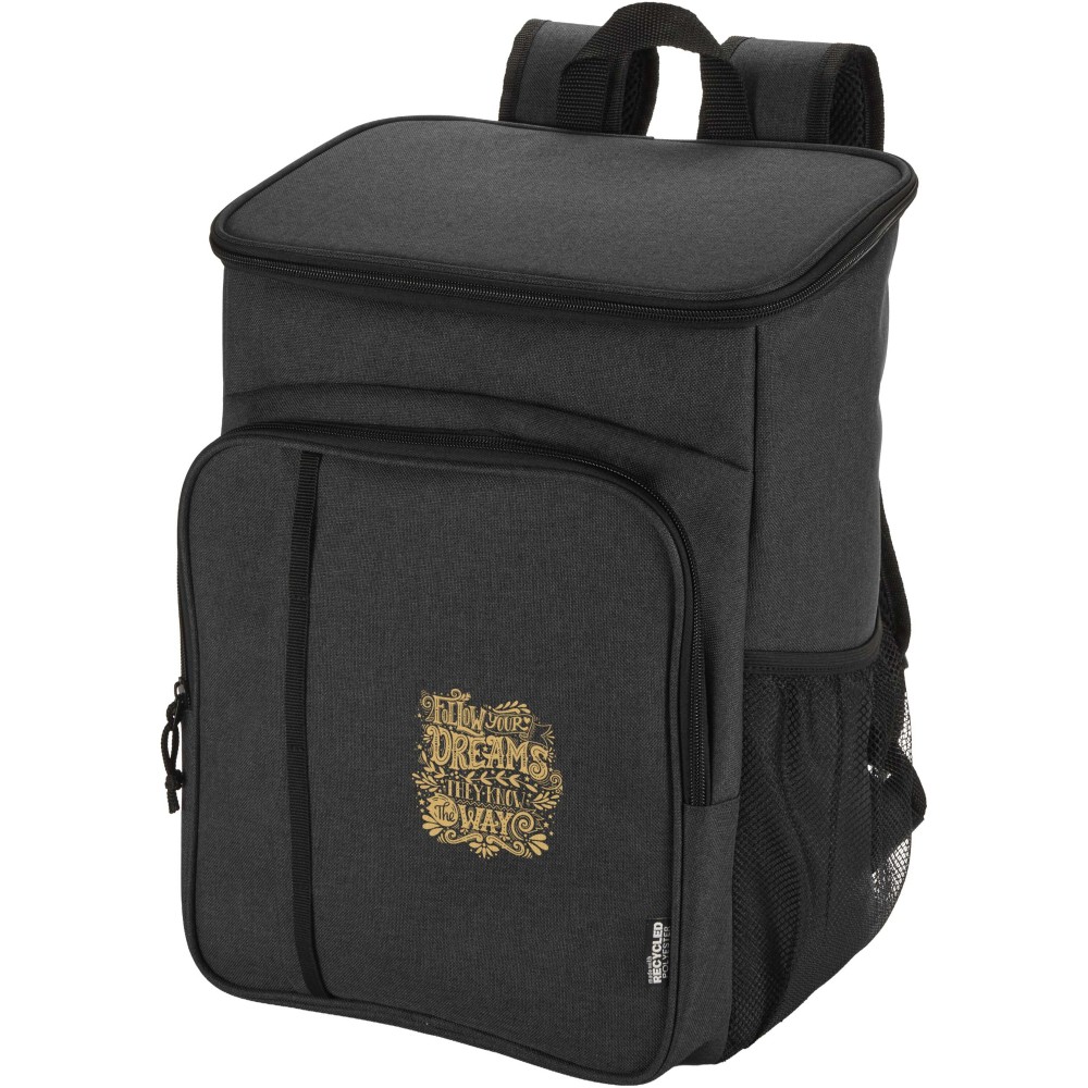 A Tundra piknik hűtőhátizsák GRS tanúsítvánnyal rendelkező újrahasznosított anyagokból készült, és egy kétszemélyes, élelmiszerbiztonsági szempontból tesztelt műanyagból készült, többször használható evőeszközkészletet is tartalmaz. A szivárgásmentes főrekesz nagy sűrűségű habszigeteléssel és hegesztett PEVA béléssel biztosítja az ételek és italok hűtését órákon át. A praktikus kialakítás érdekében a termék két oldalsó hálós zsebbel, egy evőeszközökkel (két kés, két villa, két pohár és két tányér) felszerelt cipzáras elülső zsebbel, valamint egy felső kiegészítő cipzáras zsebbel rendelkezik. A 20 literes űrtartalmú hátizsák a párnázott, állítható vállpántok és a stabil hevederes hordfül segítségével kényelmesen szállítható, így ideális kiegészítő piknikezéshez, szabadtéri étkezésekhez, kempingezéshez vagy strandoláshoz.
