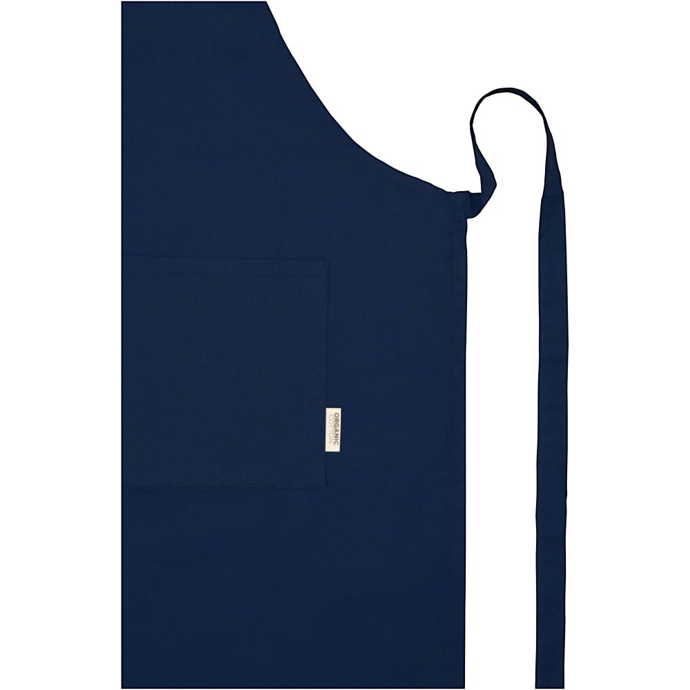 100% OCS tanúsítvánnyal rendelkező, 200 g/m2 sűrűségű, indiai származású organikus pamutból készült kötény, amely két darab, összesen 45 x 20 cm méretű zsebbel és 1 méteres megkötővel rendelkezik. A pánt hossza 55 cm.