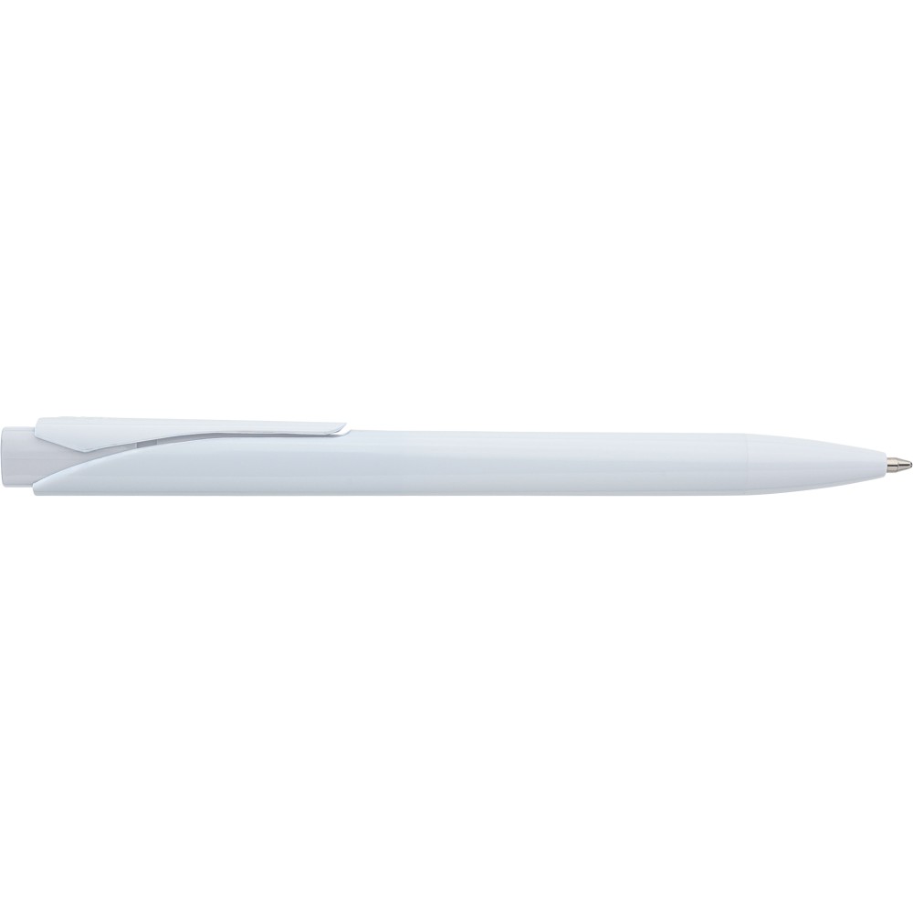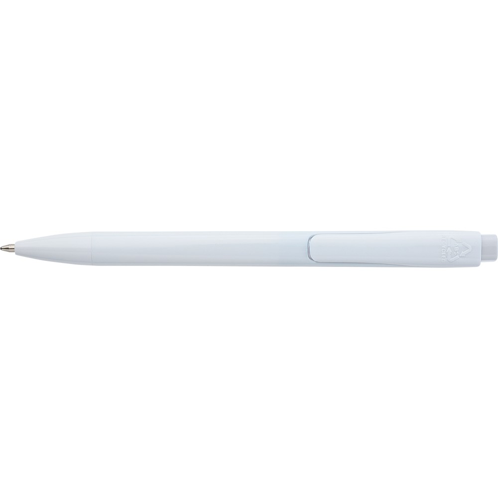 Golyóstoll tömör fehér tolltesttel és színes nyomógombbal. Újrahasznosított ABS-ből készült. Nyomógombos szerkezettel, klipsszel, valamint a nyomógomb tetején újrahasznosított ABS logóval rendelkezik. Kék színű, német Dokumental tollbetéttel, mely körülbelül 800 méter íráshosszt biztosít.