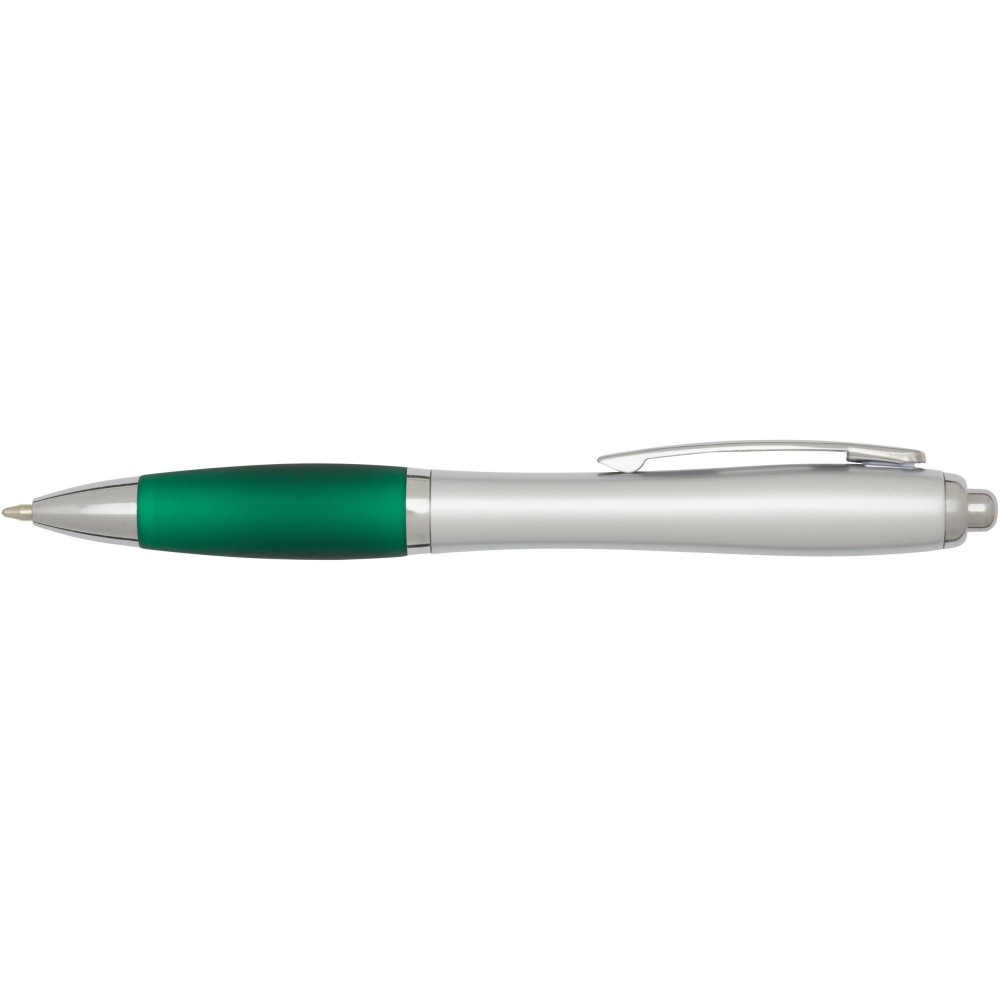 A Nash újrahasznosított műanyagból készült golyóstoll stílusos, íves kialakítással, ezüstszínű tolltesttel és kiegészítőkkel, valamint a kényelmes írást biztosító színes, puha fogórésszel rendelkezik. Az RCS tanúsítvánnyal rendelkező, újrahasznosított ABS műanyagból készült írószer tartós kivitelben segít csökkenteni a szűz alapanyagok felhasználását. A toll hátoldalán található rABS logó jelzi az újrahasznosított anyagtartalmat. Tinta színe: fekete. Tollhegy mérete: 1.0 mm. Íráshossz: 1000 méter.