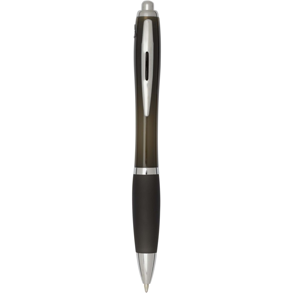A Nash újrahasznosított műanyagból készült nyomógombos golyóstoll stílusos, ívelt kialakítású, áttetsző színes tolltesttel, ezüst díszítéssel és a tolltest színével megegyező, kényelmes írást biztosító puha fogórésszel rendelkezik. Az RCS tanúsítvánnyal rendelkező újrahasznosított ABS műanyagból készült termék segít csökkenteni a szűz alapanyagok felhasználását, miközben megőrzi tartósságát. A toll hátoldalán található rABS logó jelzi az újrahasznosított anyagösszetételt. Tinta színe: kék. Tollhegy mérete: 1.0 mm. Íráshossz: 1000 méter.