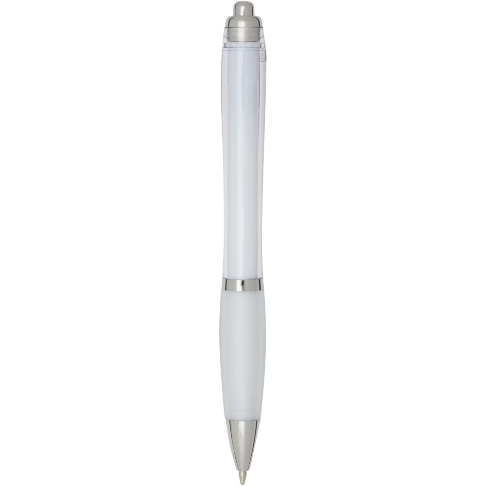 A Nash újrahasznosított műanyagból készült nyomógombos golyóstoll stílusos, ívelt kialakítású, áttetsző színes tolltesttel, ezüst díszítéssel és a tolltest színével megegyező, kényelmes írást biztosító puha fogórésszel rendelkezik. Az RCS tanúsítvánnyal rendelkező újrahasznosított ABS műanyagból készült termék segít csökkenteni a szűz alapanyagok felhasználását, miközben megőrzi tartósságát. A toll hátoldalán található rABS logó jelzi az újrahasznosított anyagösszetételt. Tinta színe: fekete. Tollhegy mérete: 1.0 mm. Íráshossz: 1000 méter.