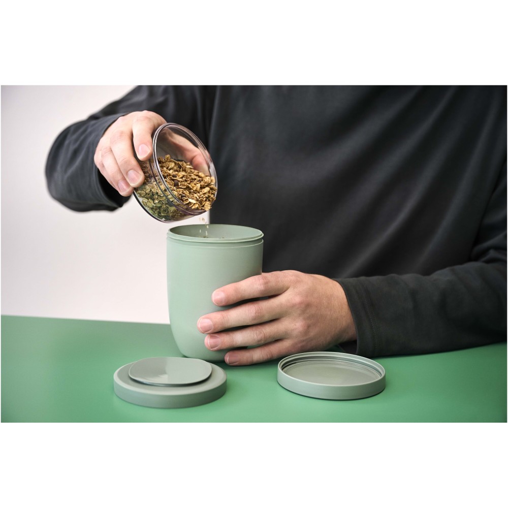 Kétrészes, hőtartó ételhordó, amely két különálló rekesszel rendelkezik az összetevők elkülönített tárolásához. A keveredés megelőzése érdekében mindkét rekesz saját fedéllel van ellátva, így kiváló választás feltétek, köretek vagy öntetek szállítására. Az ételt 6-8 órán keresztül melegen, vagy akár 12 órán át hidegen tartja. A felső, átlátszó tároló 300 ml, az alsó tartály pedig 750 ml űrtartalmú. Tartós anyagokból készült, külső felülete tapintásra hűvös és száraz marad. Tisztítása kézi mosogatással javasolt, a műanyag fedél alkatrészei mosogatógépben is tisztíthatók. BPA-mentes.
