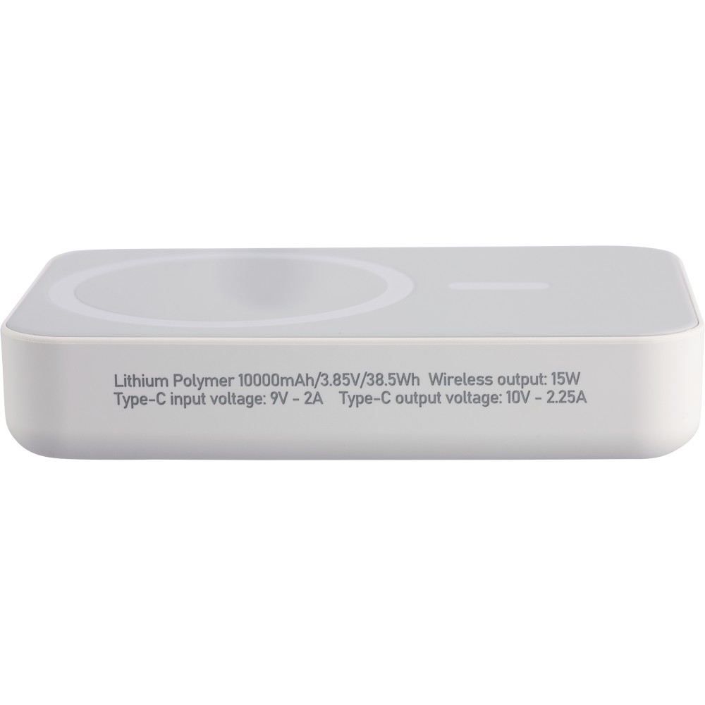 Újrahasznosított, vezeték nélküli powerbank, 10 000 mAh, fehér