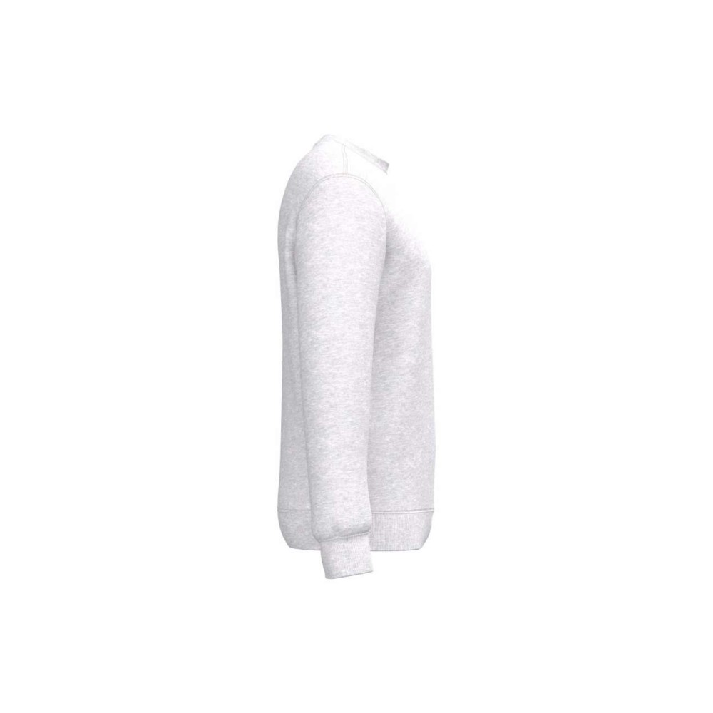 280 g/m2, 50% gyűrött pamut/50% újrahasznosított poliészter. Csiszolt polár anyag, egyenes szabás, környakas fazon. Vágott és varrott, 1x1 bordás, csőszerű összeállítás a nyakvonal, a mandzsetták és az alsó szegély jobb kiviteléért. Tónusban megegyező jersey szalag a nyakvonal belsejében. Nincs márkajelzés a nyakvonalon, csak méretcímke a könnyű dekorálás érdekében.