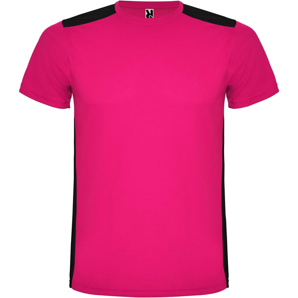 Roly Detroit rövid ujjú uniszex sportpóló, Fuchsia, Black
