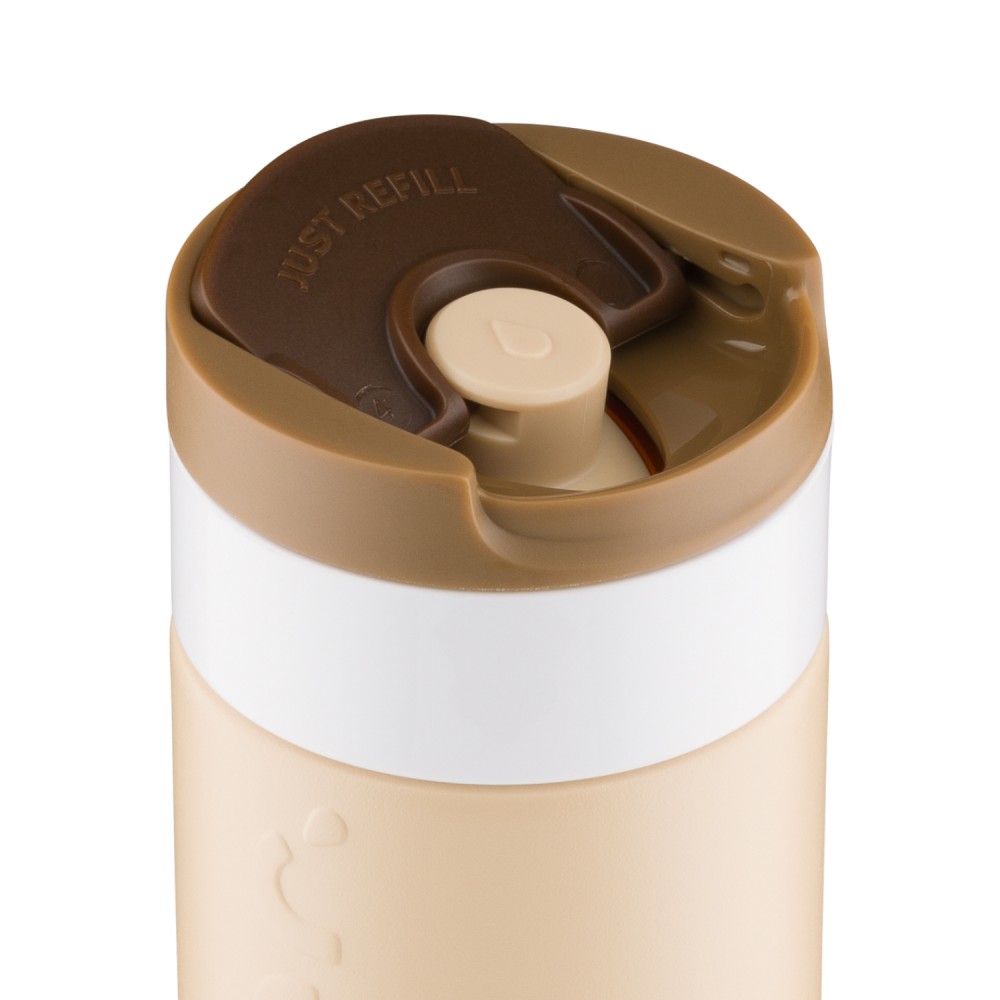 Legyen szó reggeli kávéról, napközbeni hidratálásról vagy egy esti szénsavas italról, ezt a Dopper Travel Mug-ot úgy tervezték, hogy mindenre alkalmas legyen. A meleg italokat akár 6 órán át melegen, a hideg italokat pedig 20 órán át hűvösen tartja. Duplafalú, 90%-ban újrahasznosított rozsdamentes acél testtel és tartós bevonattal készült. A könnyen nyitható, lepattintható kupak egyszerűvé és kényelmessé teszi a használatot útközben is. Mosogatógépben (emblémázás nélkül) 65 °C-ig tisztítható. Kérjük, vegye figyelembe, hogy kávé vagy tea használata esetén elszíneződés vagy szagmaradvány előfordulhat. Forró italok fogyasztásakor járjon el óvatosan!