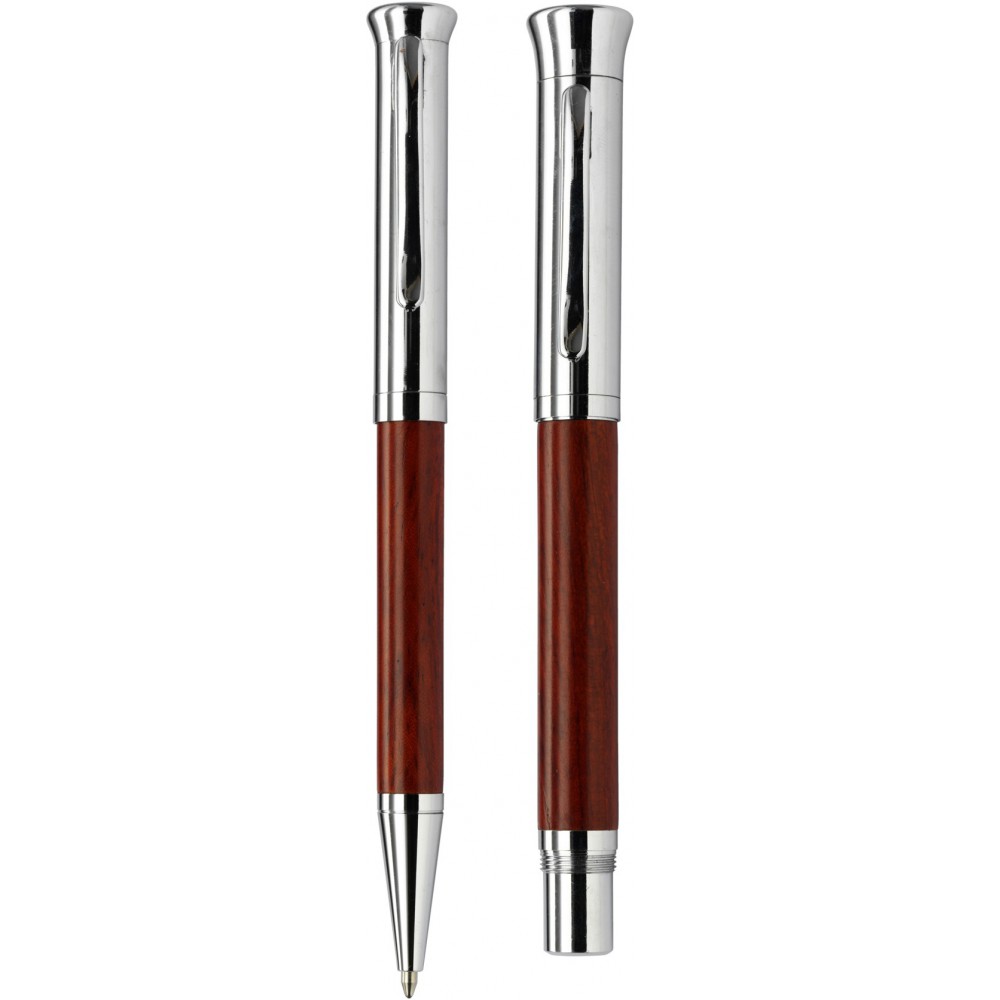 Rózsafa tollkészlet. Golyóstoll és rollerball fekete tollbetéttel, díszdobozban.