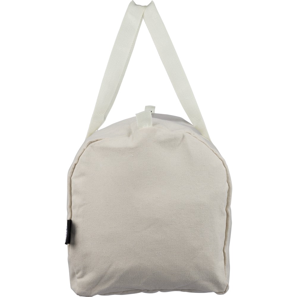 Újrahasznosított pamut-poliészter, 330 g/m2 kevertszövetből készült sporttáska nagy, cipzáras felső rekesszel, 100 cm hosszúságú és 3 cm szélességű hosszú fülekkel, a táska színével megegyező hevederrel. Megközelítőleg 30 literes űrtartalommal rendelkezik. A külső felületen rPET címkével, a belső részben újrahasznosított alapanyagra utaló címkével ellátva.
